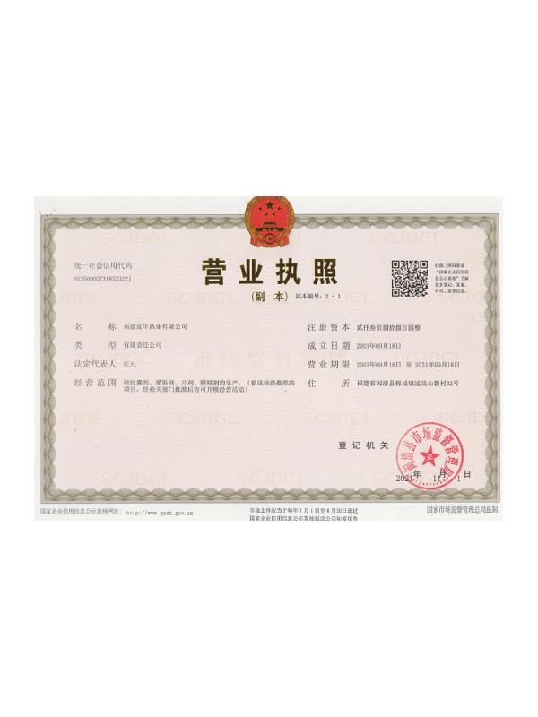 福建延年藥業(yè)有限公司位于福州市閩清縣城關(guān),工廠坐落在風(fēng)景秀美的梅城森林公園山腳下,公司前身是中國人民解放軍第9747工廠,創(chuàng)辦于1970年9月,隸屬南京軍區(qū)總后勤部,企業(yè)的地方名稱為福建閩清制藥廠。1998年6月為貫徹中央關(guān)于軍隊不再從事經(jīng)商活動的決議,企業(yè)軍轉(zhuǎn)地改制移交地方,2001年9月企業(yè)改制,更名為福建延年藥業(yè)有限公司。